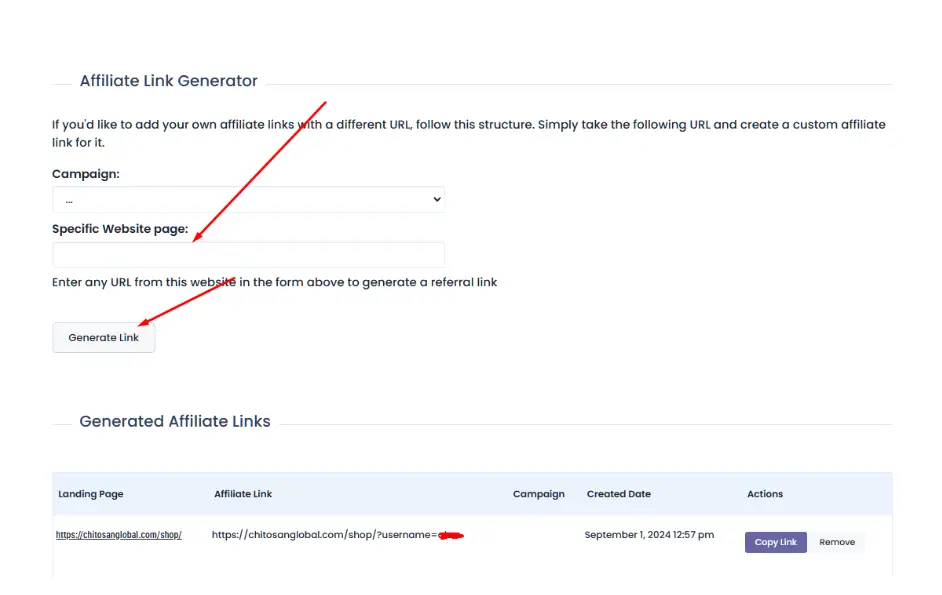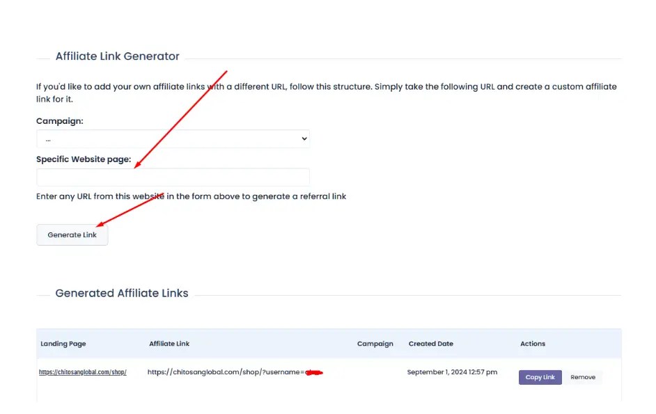 As an affiliate, you have the ability to generate referral links that can be shared with others to earn commissions on both retail and wholesale product sales. Here’s how you can do it:
