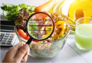 Here, the total number of calories in a serving is listed as well as the amount of the total that comes from fat.
